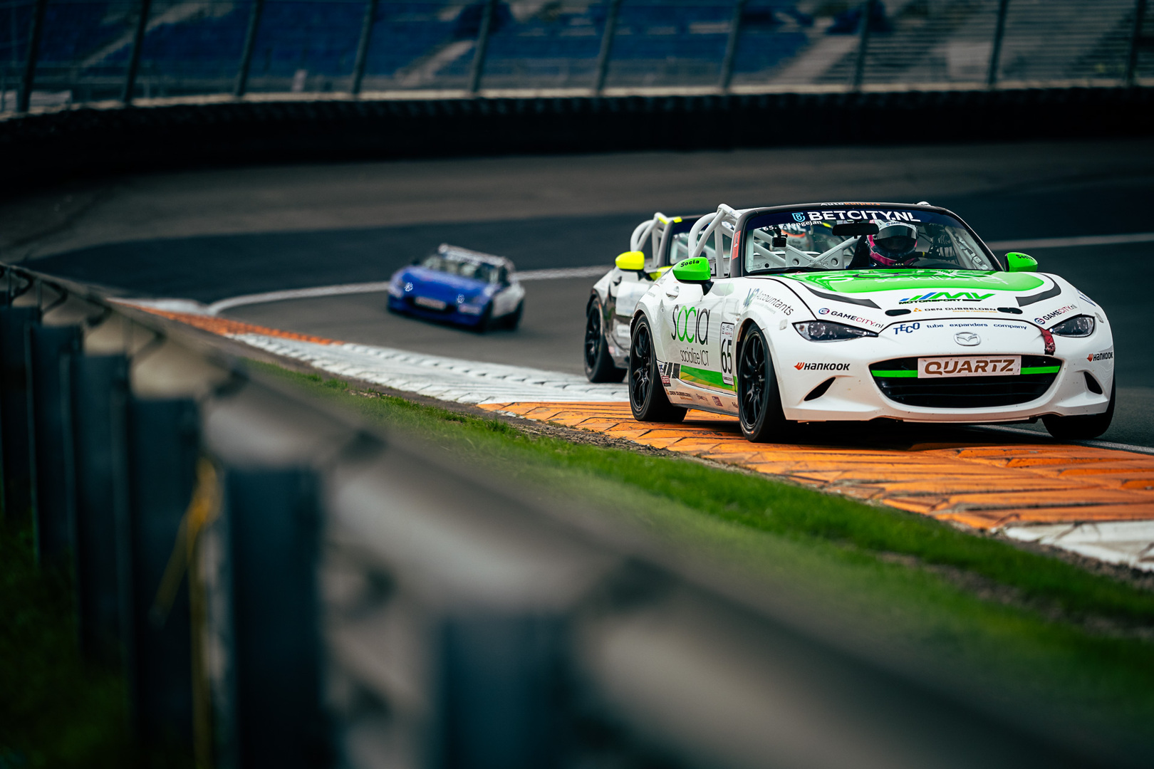 Het was zoals gebruikelijk weer een Mazda MX-5 wedstrijd om in te lijsten. En zoals altijd was de laatste ronde bepalend voor de volgorde op de finish. Met veel bravoure vertelde Lorenzo van Riet vooraf dat hij zeker twee wedstrijden zou gaan winnen vandaag. Het werd er slechts één, maar wat een prestatie leverde de Ferry Monster coureur om zich zo breed te maken tegen een continu aandringende Sam Jongejan, die elke kans aangreep om Van Riet te verschalken. Een fantastische prestatie ook van Leon van Verseveld, die de laatste podiumplaats voor zich opeiste. Met nog 4 wedstrijden te gaan ligt het kampioenschap nog steeds helemaal open.