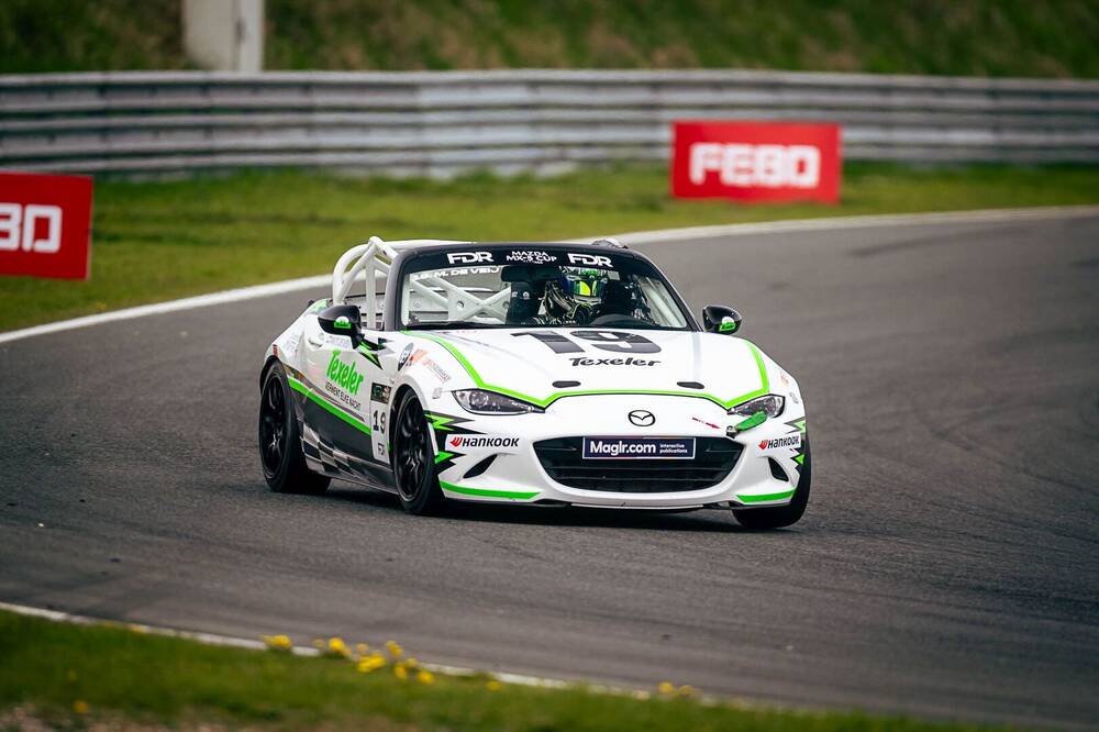 Helemaal onbekend met de Mazda roadster was Mats de Veij ondanks zijn pas 19 jaar niet, maar de V-Max Voorjaarsraces betekenden voor de inwoner van het Texelse Oudeschild wel het debuut in de Mazda MX-5 Cup Benelux. De Veij bekroonde zijn eerste raceweekend met twee top tien klasseringen en dat belooft dus nog wat voor de nabije toekomst.